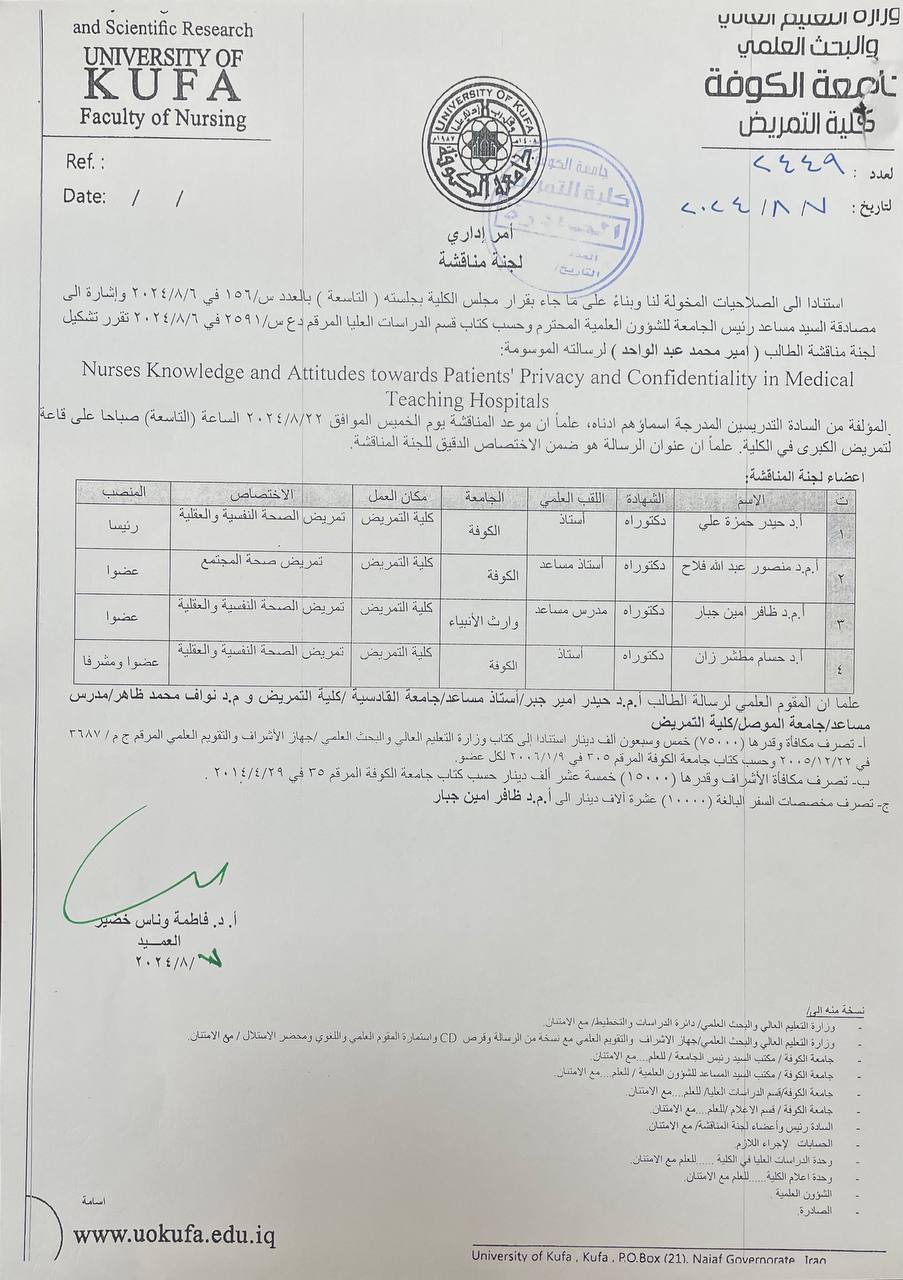 عميد كلية الطب يرأس لجنة مناقشة في جامعة البصرة