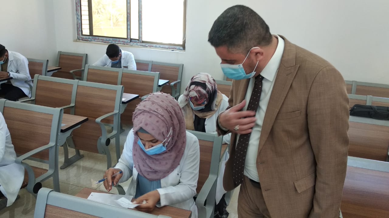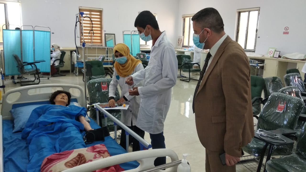 مع بدأ الامتحانات العملية الحضورية النهائية للفصل الدراسي الاول للعام الدراسي 2020-2021... قام السيد عميد كلية التمريض ( ا.م.د مرتضى غانم ) بجولة على القاعات الامتحانية والمختبرات العلمية لتفقد ومتابعة سير الامتحانات الحضورية التي بدأت اليوم الاحد بتاريخ 4/4/2021 و للمرحلتين الاولى و الثالثة.