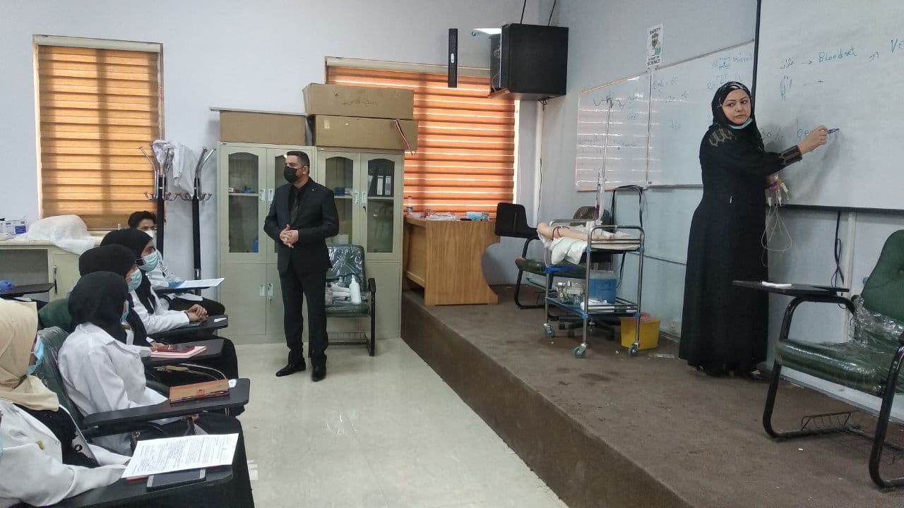 تابع الاستاذ المساعد الدكتور مرتضى غانم الجبوري عميد كلية التمريض التدريب العملي للطلبة الاعزاء وكذلك الاستماع لهم الوقوف على المعوقات التي تواجههم اثناء التدريب