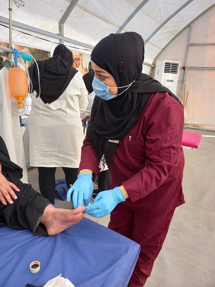 بالصور... أساتذة وطلبة كلية التمريض يقدمون الخدمات التمريضية والعلاجية لزائري اربعينية الامام الحسين (عليه السلام).
