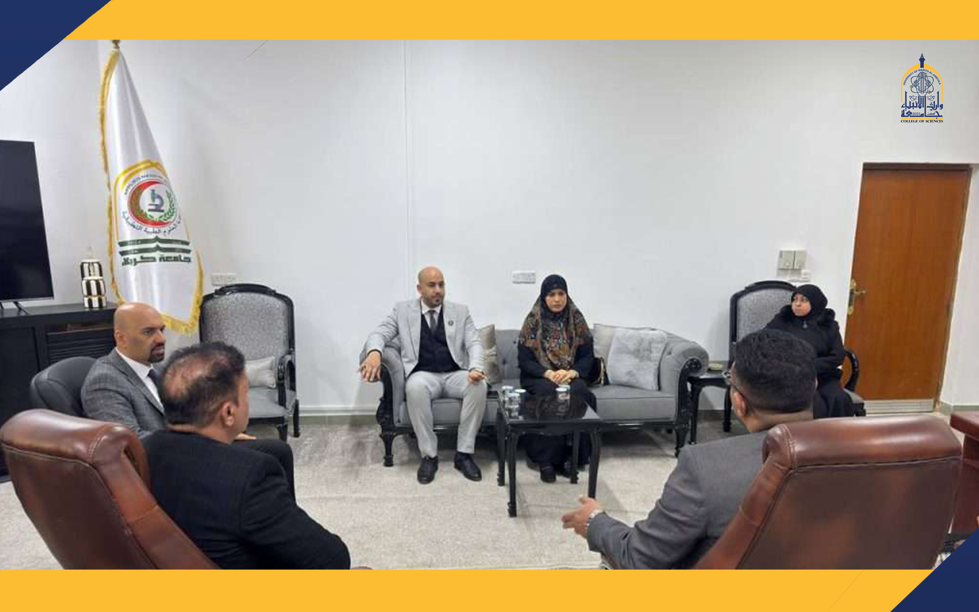 زارت الأستاذ المساعد الدكتورة شيماء حسين نوفل، عميد كلية العلوم في جامعة وارث الأنبياء، كلية العلوم الطبية التطبيقية في جامعة كربلاء، حيث استقبلها الأستاذ المساعد الدكتور حسن فيصل نعمة، عميد الكلية.