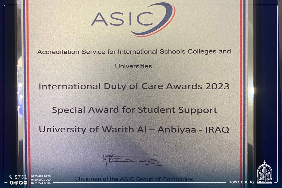 شارك مدير مركز التعليم المستمر الأستاذ المساعد الدكتور حيدر الغانمي ورئيس قسم ضمان الجودة المدرس المساعد حسين حازم الغانمي في المؤتمر الدولي الذي نظمته منظمة ASIC البريطانية "منظمة الإعتماد الأكاديمي المؤسسي الدولي البريطاني ASIC"، وهي هيئة اعتماد لمختلف الجامعات والمعاهد والمؤسسات الأكاديمية الدوليّة الأخرى.