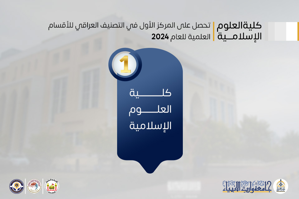حقق قسم علوم القرآن في كلية العلوم الإسلامية إنجازًا أكاديميًا بارزًا بحصوله على المركز الأول في التصنيف العراقي للأقسام العلمية، الذي أعلنته وزارة التعليم العالي والبحث العلمي.