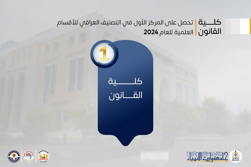 حققت كلية القانون في جامعة وارث الأنبياء (عليه السلام) إنجازًا علميًا بارزًا، حيث حصلت على المركز الأول بين الجامعات الأهلية والمركز الثاني مكرر على مستوى الجامعات العراقية في التصنيف الذي أصدرته وزارة التعليم العالي والبحث العلمي.