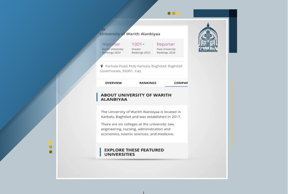 تعد هذه المشاركة إضافة قيمة لجامعة وارث الأنبياء، حيث تأتي ضمن جهودها الرامية للارتقاء بالمستوى الأكاديمي والبحثي. ويعكس هذا التصنيف المرموق التفوق العلمي والتميز التعليمي الذي تتمتع به الجامعة.