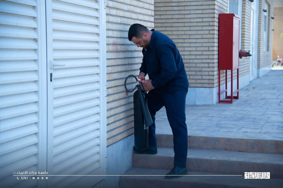 تواصل شعبة الدفاع المدني في جامعة وارث الأنبياء (عليه السلام) تنفيذ متابعاتها اليومية الدقيقة لمعدات وأنظمة السلامة العامة في جميع مفاصل الجامعة، في إطار جهودها المتواصلة لضمان بيئة تعليمية آمنة ومحصنة من المخاطر.