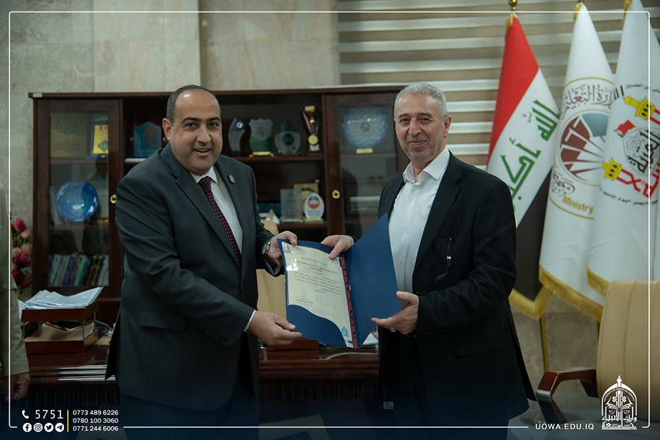 ضمن مساعي وزارة التعليم العالي والبحث العلمي لتطوير التعاون العلمي مع الجامعات الرصينة حول العالم، شارك وفد من جامعة وارث الانبياء(عليه السلام) برئاسة الاستاذ الدكتور ابراهيم الحياوي، بالإجتماع الذي عقد في جامعة بغداد بين جامعات (بغداد، النهرين، التكنولوجية وجامعة وارث الانبياء)، ووفد من جامعة دندي البريطانية بحضور مستشار رئيس الوزراء العراقي الاستاذ الدكتور حامد خلف احمد.