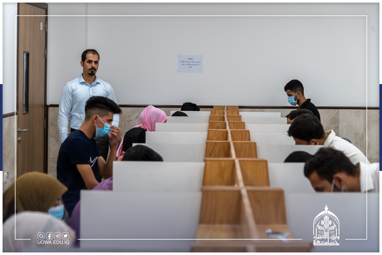 بإشراف السيد رئيس الجامعة الاستاذ الدكتور ابراهيم الحياوي والسيد المساعد العلمي الاستاذ الدكتور عباس الدعمي والسيد عميد كلية التمريض أ.م.د مرتضى الجبوريوبالتعاون مع مركز الحاسبة الالكترونية وشعبة التعليم الالكتروني في الجامعة.أجرت كلية التمريض الامتحان التقويمي الوزاري، حيث أدى الطلبة الامتحان بعد استلام الاسئلة الوزارية من قبل الفريق الالكتروني للجامعة الذي بدوره وزع الاسئلة على الطلبة، وتابع الفريق الوزاري من خلال المنصة الالكترونية المخصصة للامتحان التقويمي فضلا عن الاساتذة داخل القاعات الامتحانية لمتابعة سير العملية الامتحانية داخل الكلية.يذكر أن جامعة وارث الانبياء (عليه السلام) قد جهزت مسبقاً ( 8 ) ثمانية مختبرات علمية بأحدث الوسائل التعليمية الحديثة لاجراء الامتحان التقويمي.