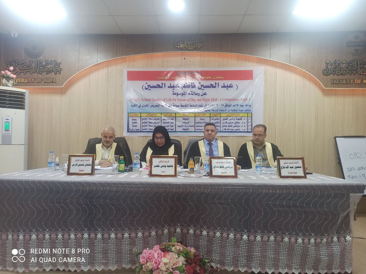 اختير الاستاذ المساعد الدكتور مرتضى غانم الجبوري عضواً لمناقشة رسالة ماجستير لأحد طلبة الدراسات العليا في كلية التمريض بجامعة الكوفة.
