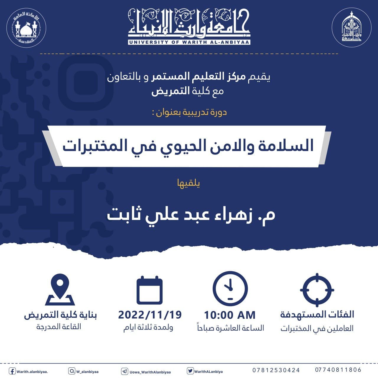 "جودة المختبرات التعليمية " بدورة تدريبية في جامعة وارث