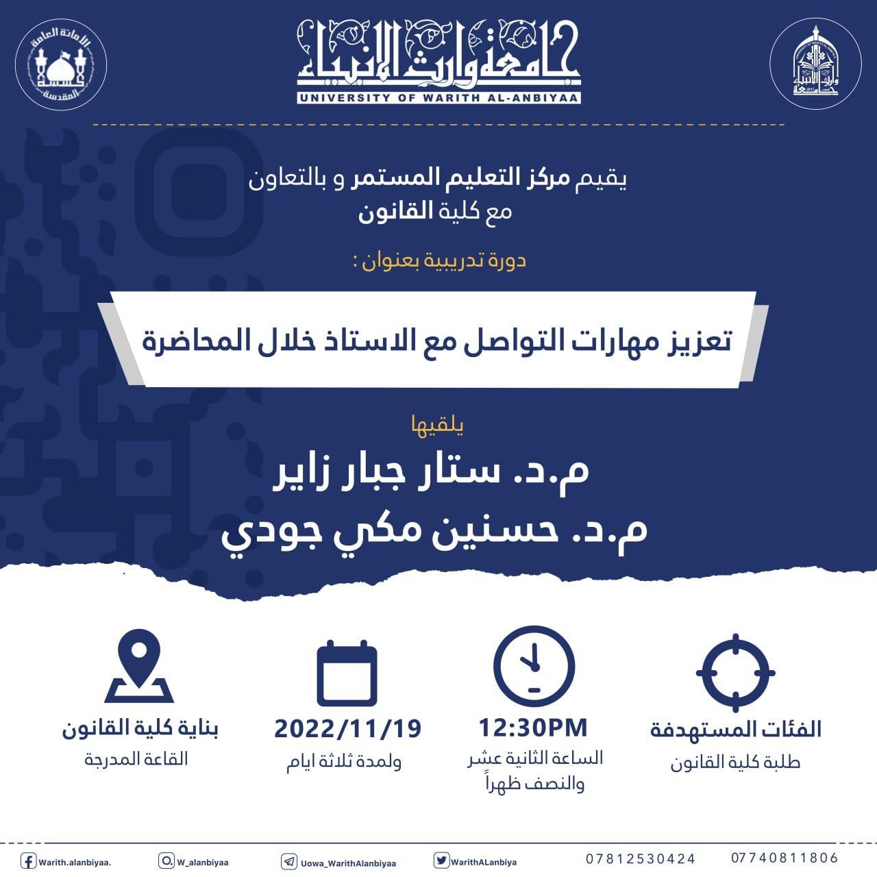 "المصطلحات القانونية في اللغة الانكليزية"بدورة علمية في جامعة وارث الانبياء