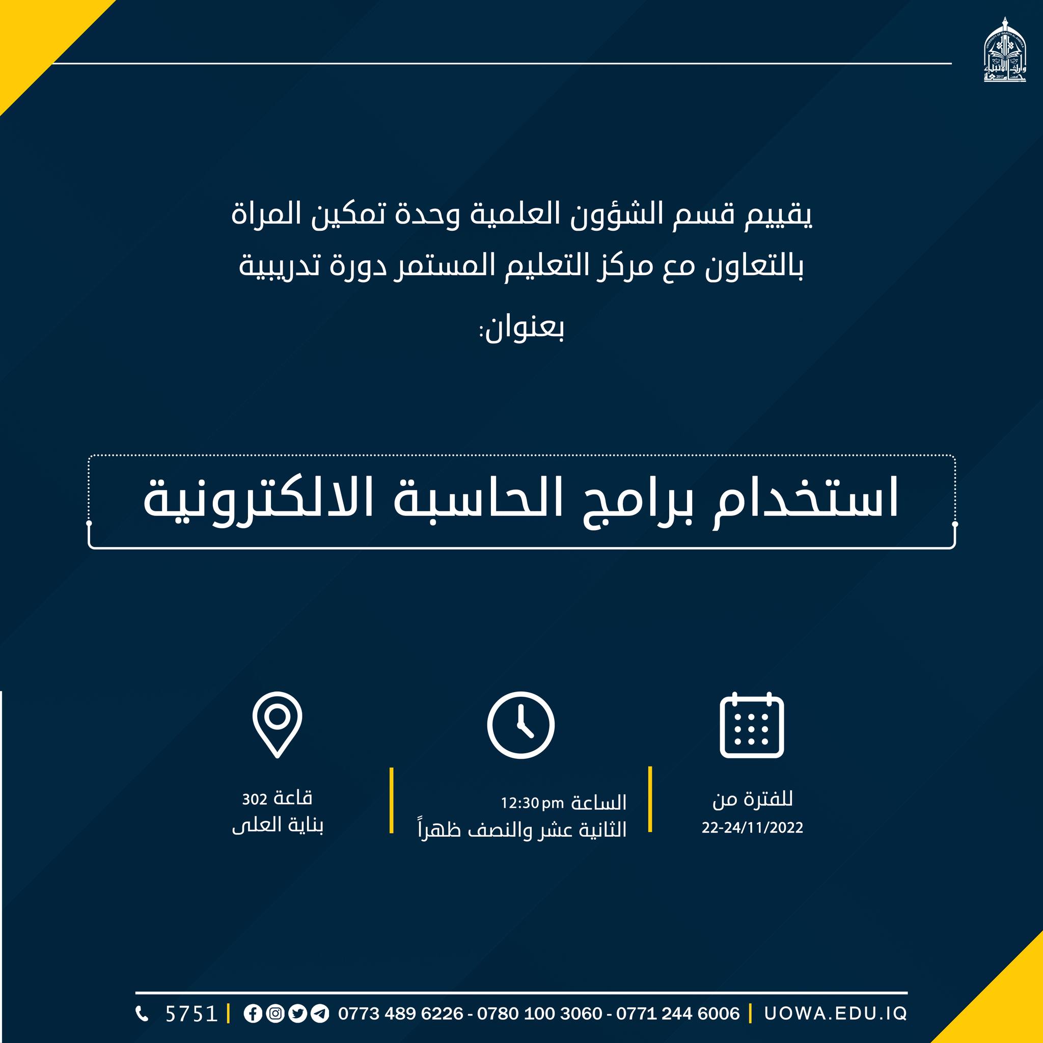 أقام قسم الشؤون العلمية في جامعة وارث الأنبياء (عليه السلام) اليوم الاثنين 24-10-2022