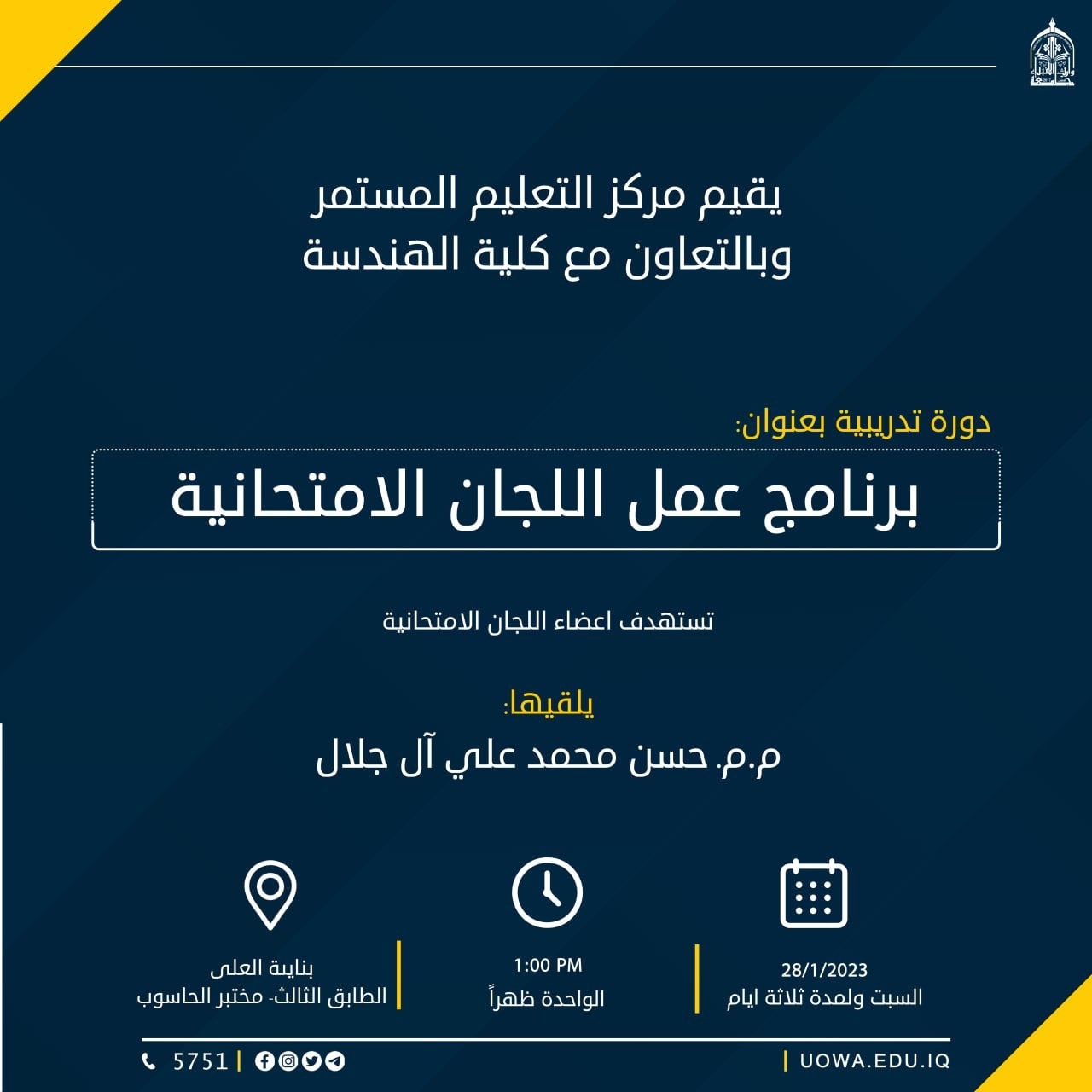 العراق – كربلاء المقدسة على قاعات جامعة وارث الانبياء ع.الوقت