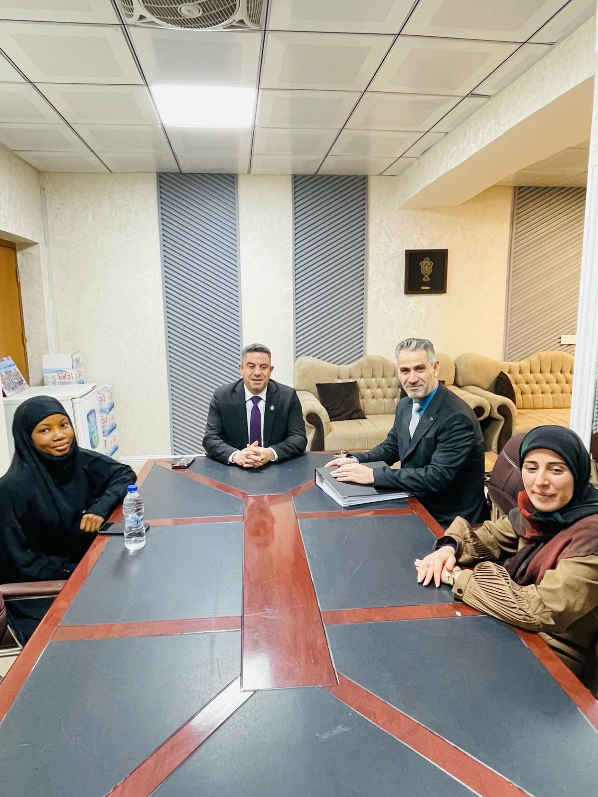 The Deanship of the College of Nursing, represented by its Dean and the Dean’s Assistants for Academic and Administrative Affairs, meets with the Nigerian student accepted for the free scholarship seat and sets an educational schedule for her that suits her condition.