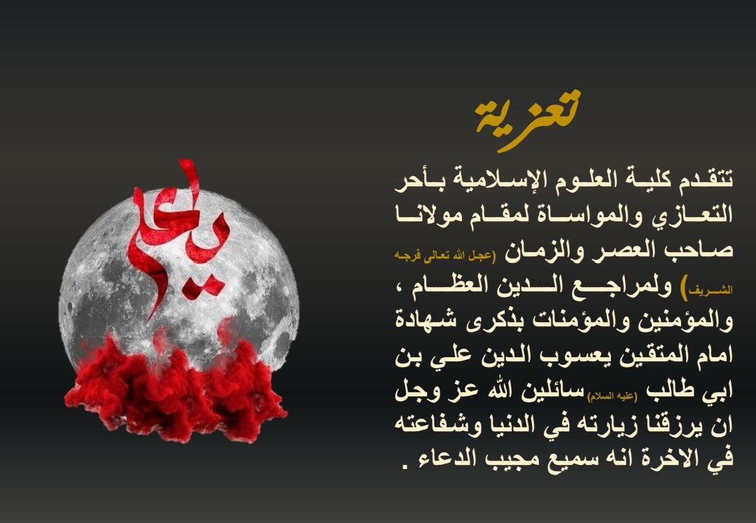 The College of Islamic Sciences extends its deepest condolences and sympathies to our Master, the Awaited Imam (may Allah hasten his reappearance), the esteemed religious authorities, and all believers on the martyrdom anniversary of the Leader of the Pious and the Standard-Bearer of Religion, Imam Ali ibn Abi Talib (peace be upon him).