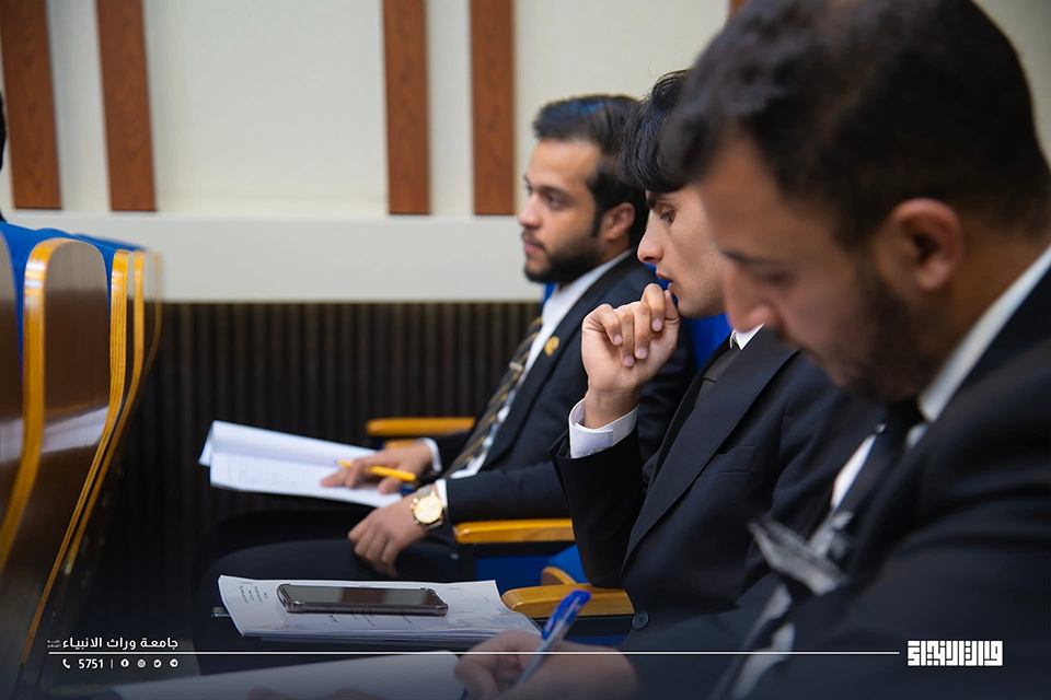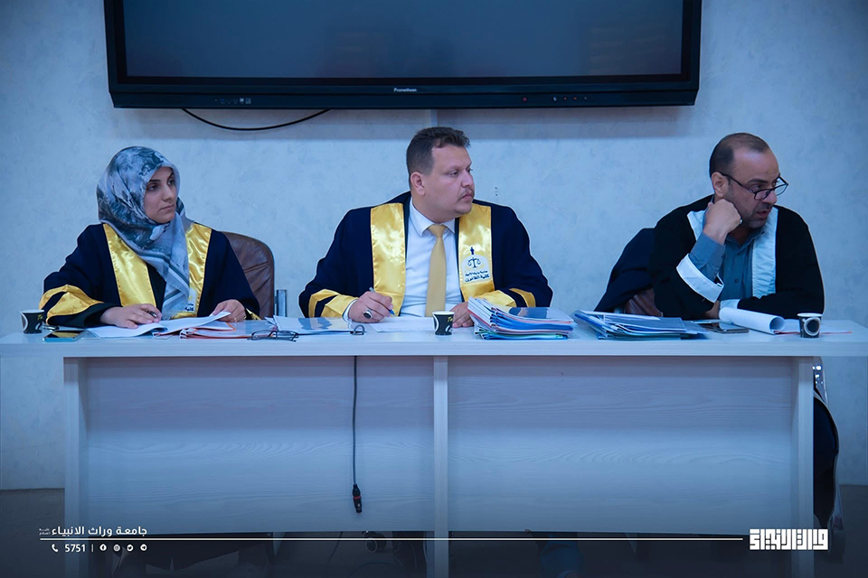 The College of Law and Political Science at the University of Warith Al-Anbiyaa (PBUH) held academic sessions to discuss the graduation projects of fourth-year students. These sessions were conducted in a scholarly and precise atmosphere, with the attendance of Prof. Dr Naufal Al-Aaraji, Vice President for Administrative Affairs, along with the college’s leadership.