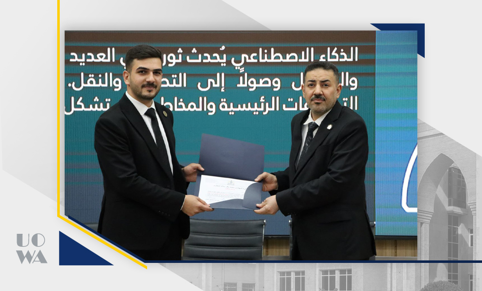 Under the patronage of the esteemed President of Warith Al-Anbiya University, Professor Ibrahim Al-Hayawi, and under the direct supervision of the esteemed Dean of the College of Medicine, Professor Ali Abdul Saadoun Al-Ghazi, the College of Medicine, in cooperation with the Technical Education Authority, held a scientific symposium entitled "The Risks of Artificial Intelligence and Ways to Prevent Them" on Tuesday, April 15, 2025, in the Workshops and Courses Hall in Al-Naeem Building.