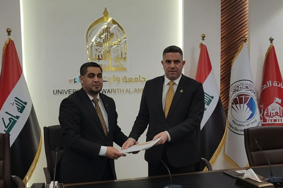 The College of Nursing at the University of Warith Al-Anbiyaa has signed a new scientific cooperation agreement with the provincial Nursing Syndicate, marking a pioneering step aimed at empowering nursing professionals and opening broad academic pathways for them to obtain advanced university qualifications that contribute to the development of their professional performance.
