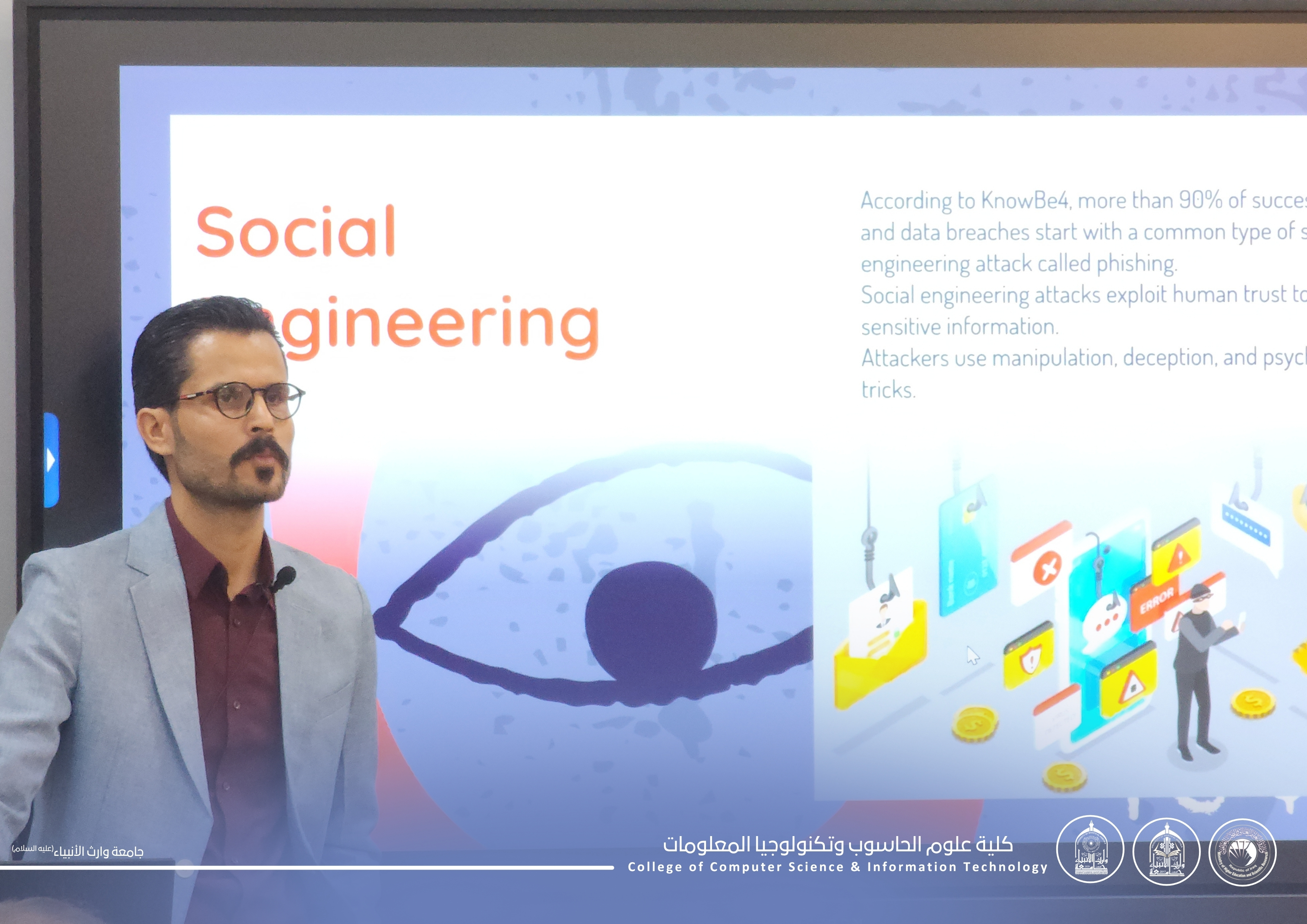The College of Computer Science and Information Technology organized a scientific workshop for its students entitled “Information Security Awareness”,