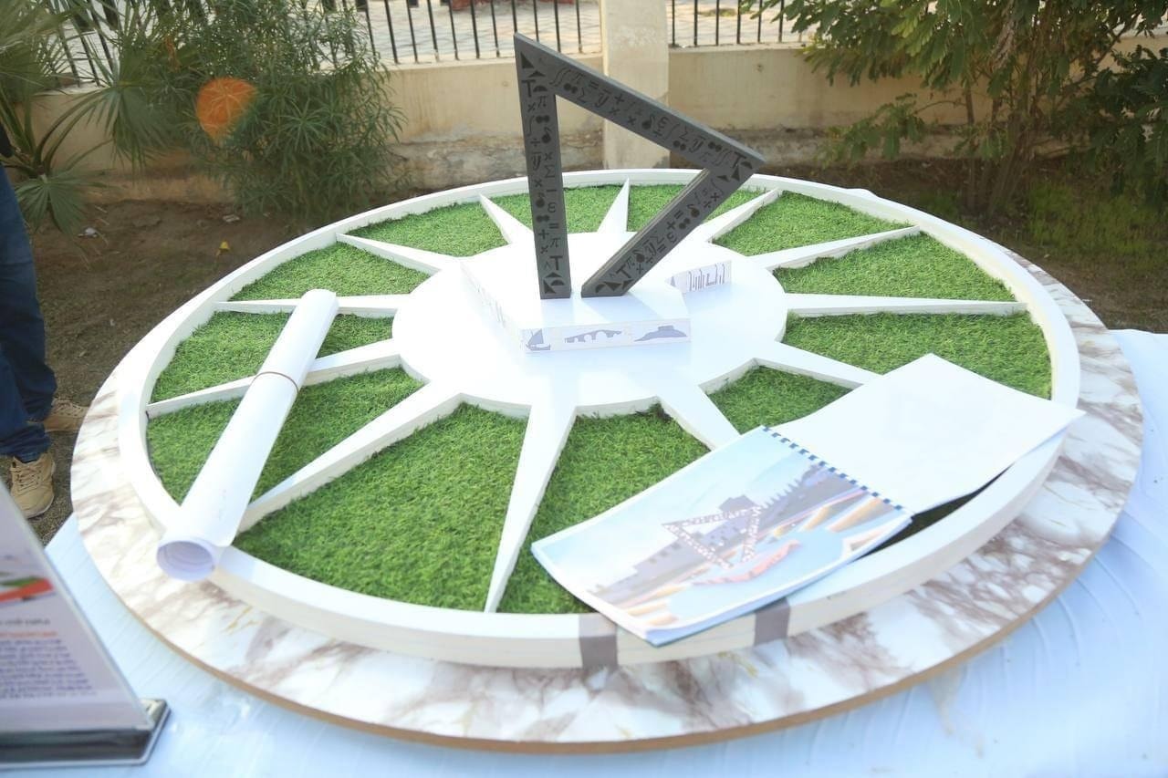Ibrahim Qaisem Hatem explained: The design idea of the engineer's monument emanates from the engineers who work within the triangle (cost, quality, creativity) and to create a link between the triangle and the sanctity of Karbala City, it was designed at an angle of 61 indicating the year of the occurrence of The Tuff Battle, and the second corner 72 indicating the number of heroes of that battle, and the third corner is open to indicate the continuation of the giving to our righteous martyrs who joined the rode of martyrs.