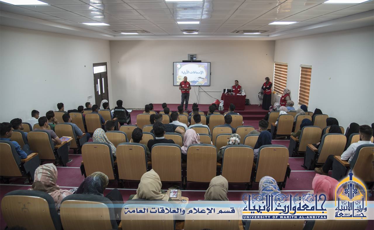 "Warith Al-Anbiyaa University, in collaboration with the Iraqi Red Crescent Society, Karbala Branch, is organizing a First Aid Workshop for university students, as part of its commitment to promoting volunteerism and supporting community engagement. The workshop, led by Sabah Al-Hilali, a trainer from the Red Crescent Society, encompasses essential principles of the Red Crescent, working procedures, and providing initial assistance to the injured. The university and students have shown great enthusiasm and dedication towards volunteer work, offering their time and efforts. In the upcoming days, there will be intensive programs focusing on proper handling and administering correct first aid techniques to those in need."