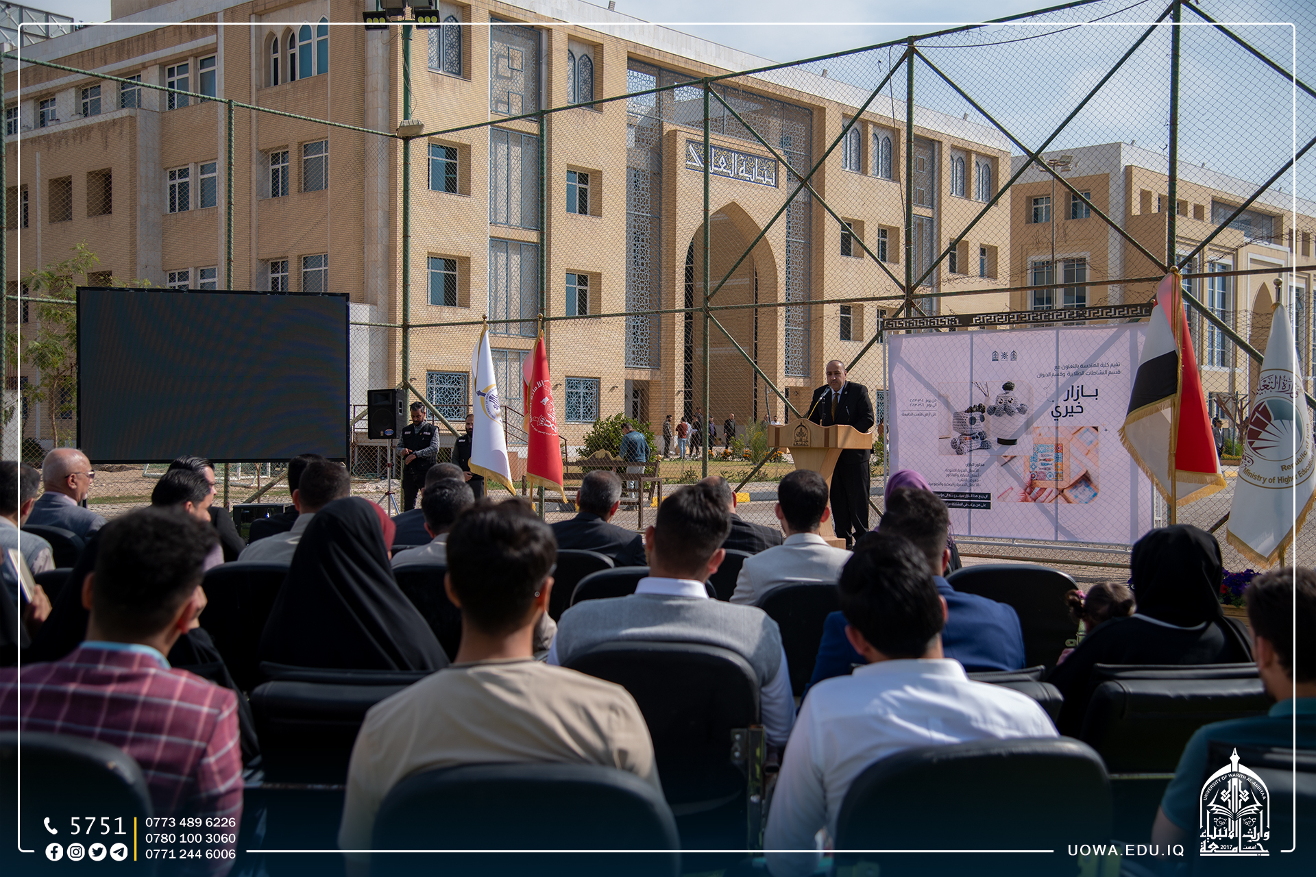 As part of the "Blessings of Muhammadan Lights" initiative launched by the Health and Higher Education Authority on the occasion of the blessed Sha'ban births, the Engineering College at Warith Al-Anbiyaa University (peace be upon him), in collaboration with the Student Activities Department and the Affairs Department of the University, organized a "Charity Bazaar" to support needy families and orphans at the Al-Ain Charitable Foundation.