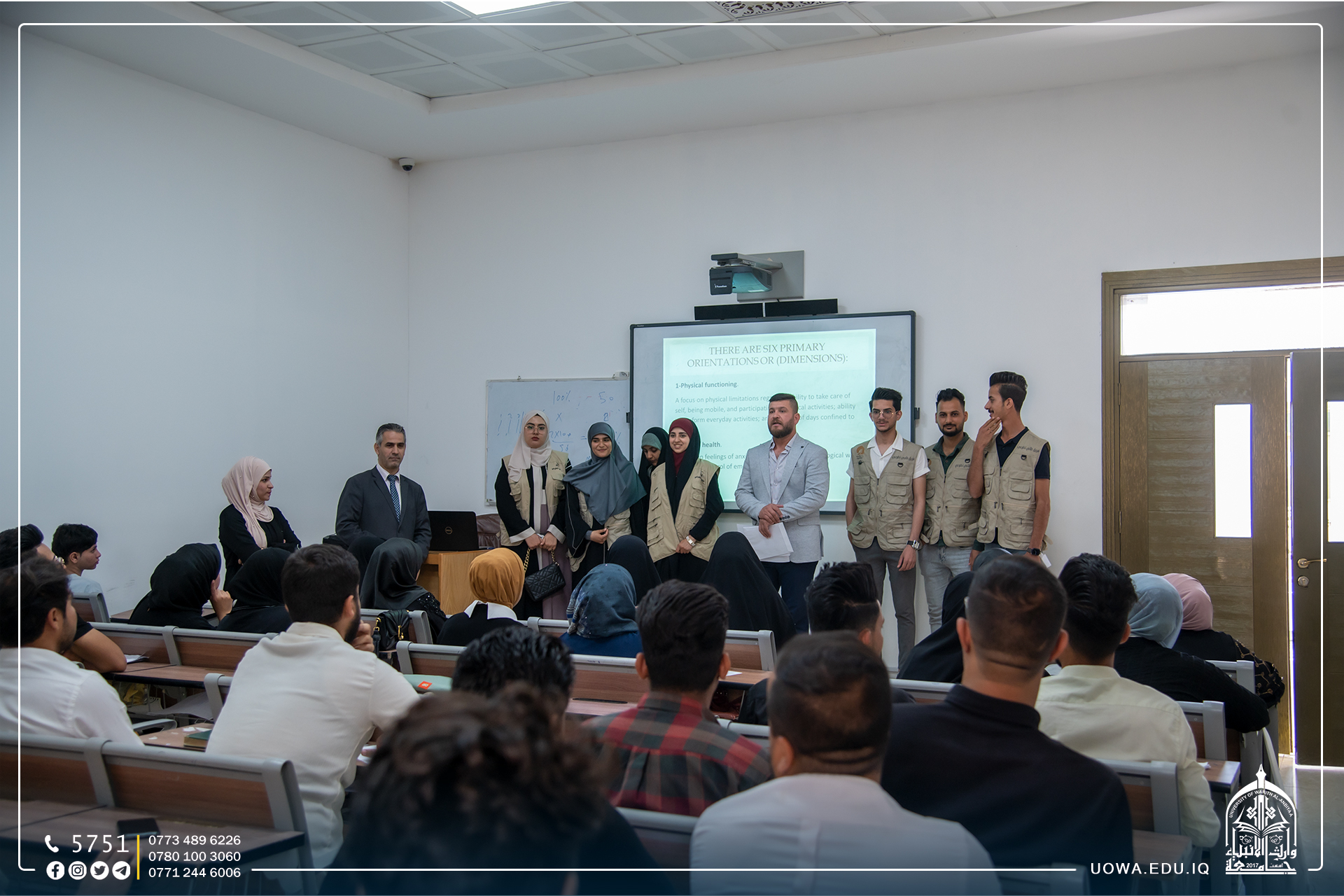 In an effort to foster a culture of volunteerism among university students, the Student Activities Department, in collaboration with the Giving Students Team at Warith Al-Anbiyaa University (peace be upon him), organized a field tour within the corridors of the university's colleges and departments. The aim was to enhance students' volunteer spirit, invite them to join the Giving Al-Warith Team, and introduce them to the Ramadan Basket Project, an annual initiative supported by the university's administration and esteemed faculty members.