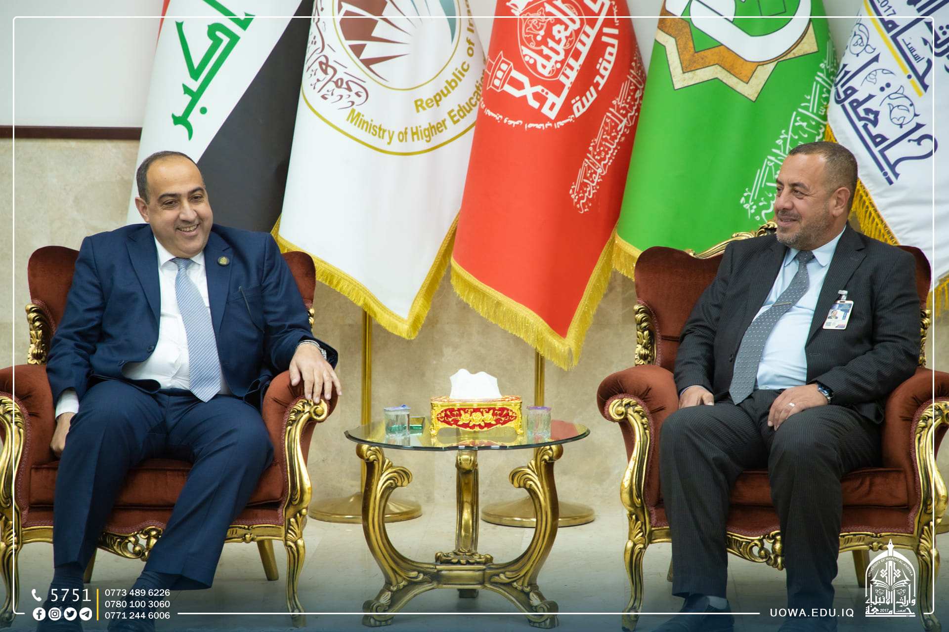 In the context of strengthening collaboration and building ties between educational and religious institutions, Professor Dr. Ibrahim Al-Hayawi, the President of the University of Warith Al-Anbiyaa (AS), welcomed Hajj Rasool Fadhlah, the Head of the System Maintenance Department at the Holy Shrine of Imam Hussain.