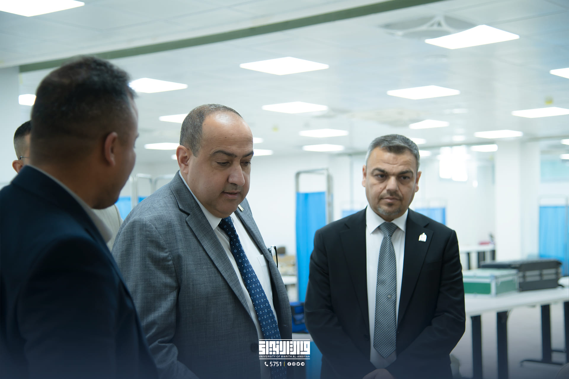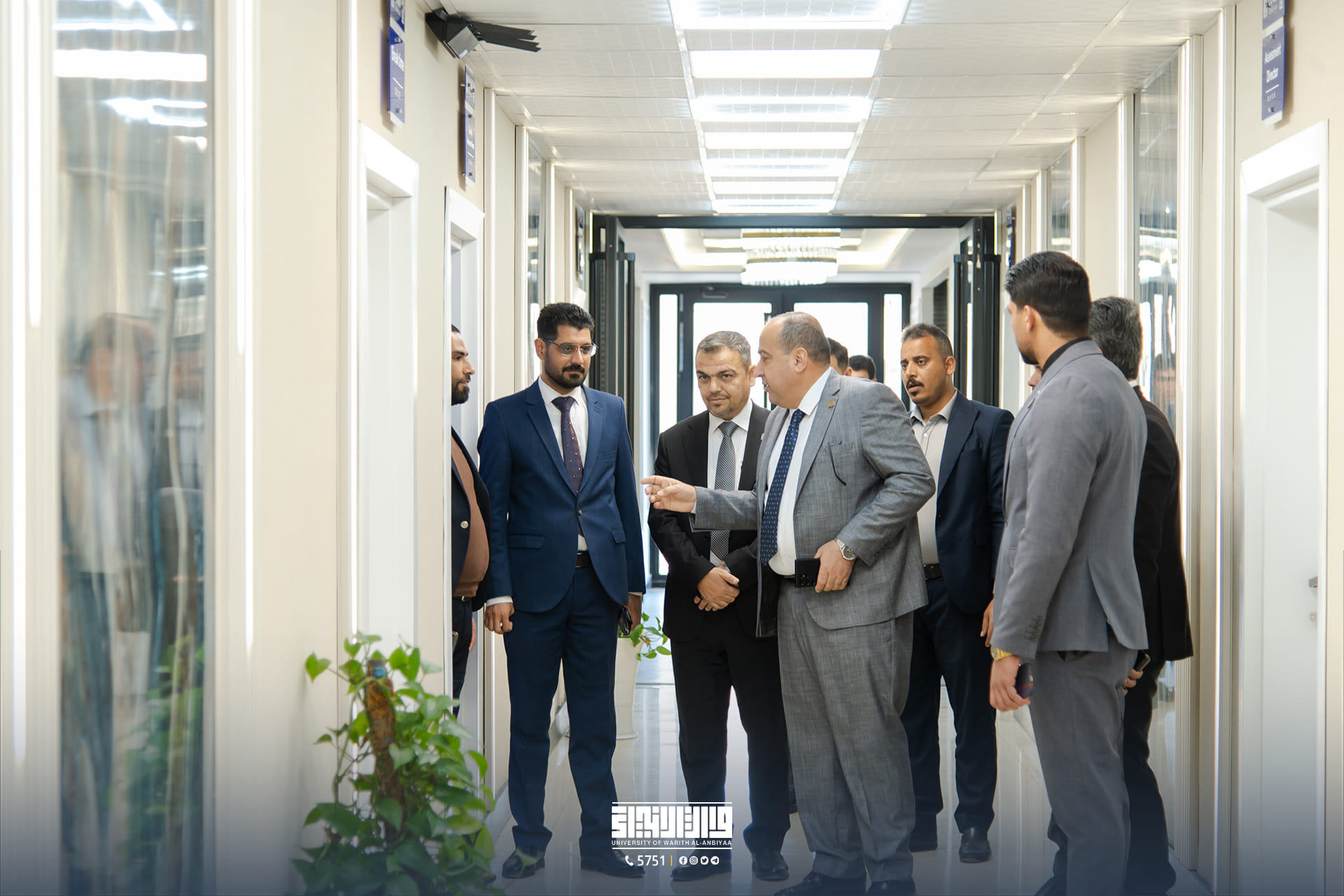 Mr. University President, Professor Dr. Ibrahim Saeed Al-Hayawi, accompanied by Mr. Assistant Scientific, Professor Dr. Waqad Al-Mousawi, toured the corridors of the university to observe the progress of the educational process and development projects at the university, and to monitor the achievement rates therein.