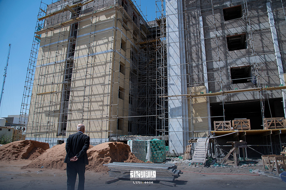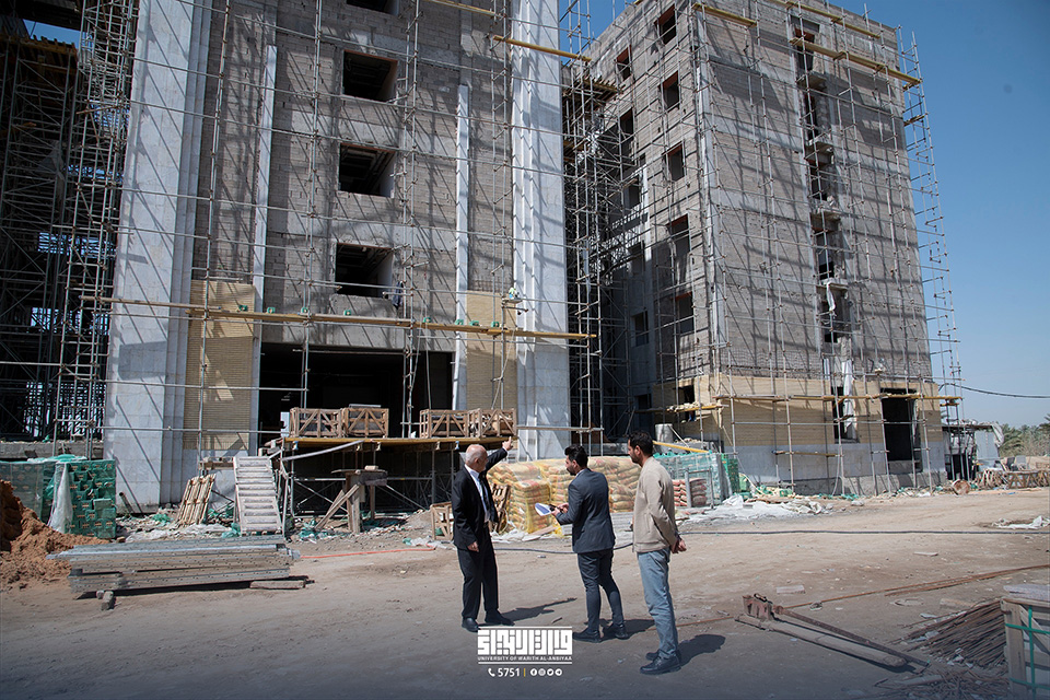 The purpose of this tour is to monitor the progress of work and assess the completion percentage in the internal departments building, which consists of three buildings reaching up to six floors, accommodating a large number of female students along with other available facilities.