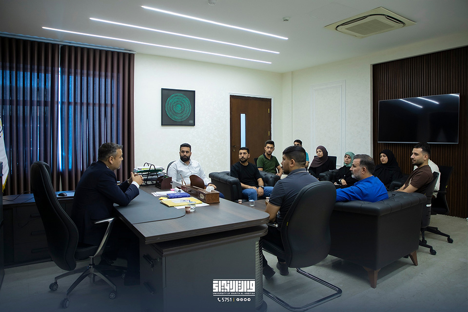 The Assistant President of the University for Scientific Affairs, Professor Dr. Waqed Al-Mousawi, met with the Department of Registration and Student Affairs to discuss the current advancements in the workflow and services given to students. A number of significant topics, including the upcoming graduate programme launch, the Bologna Process, and updating student data, were covered in the conference with the goal of enhancing performance and streamlining procedures for students.