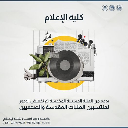 University of Warith Al-Anbiyaa (peace be upon him) offers special tuition fee discounts for members of the Holy Shrines and journalists who wish to apply to its College of Media, which includes the Digital Media and Public Relations departments.
