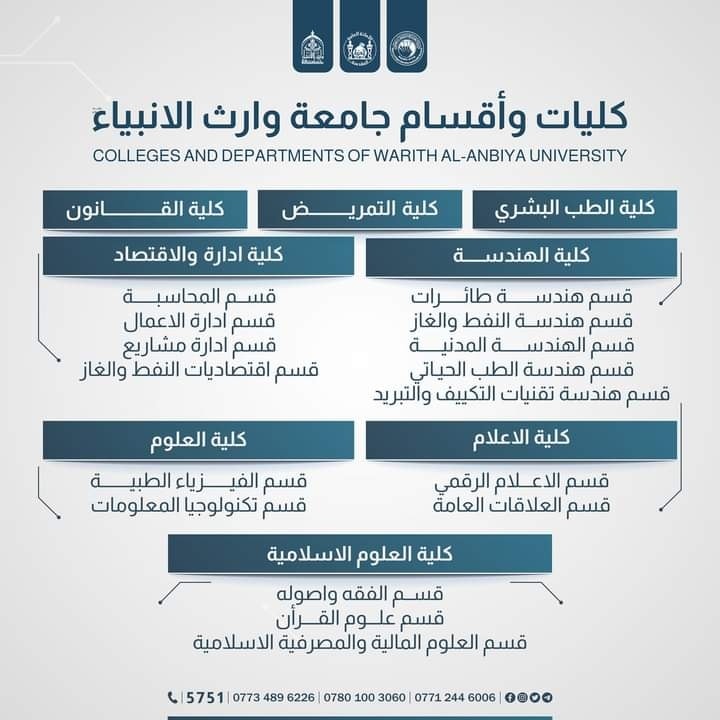 🔸 Hurry to apply to the colleges and departments of Warith Al-Anbiyaa University (peace be upon him).