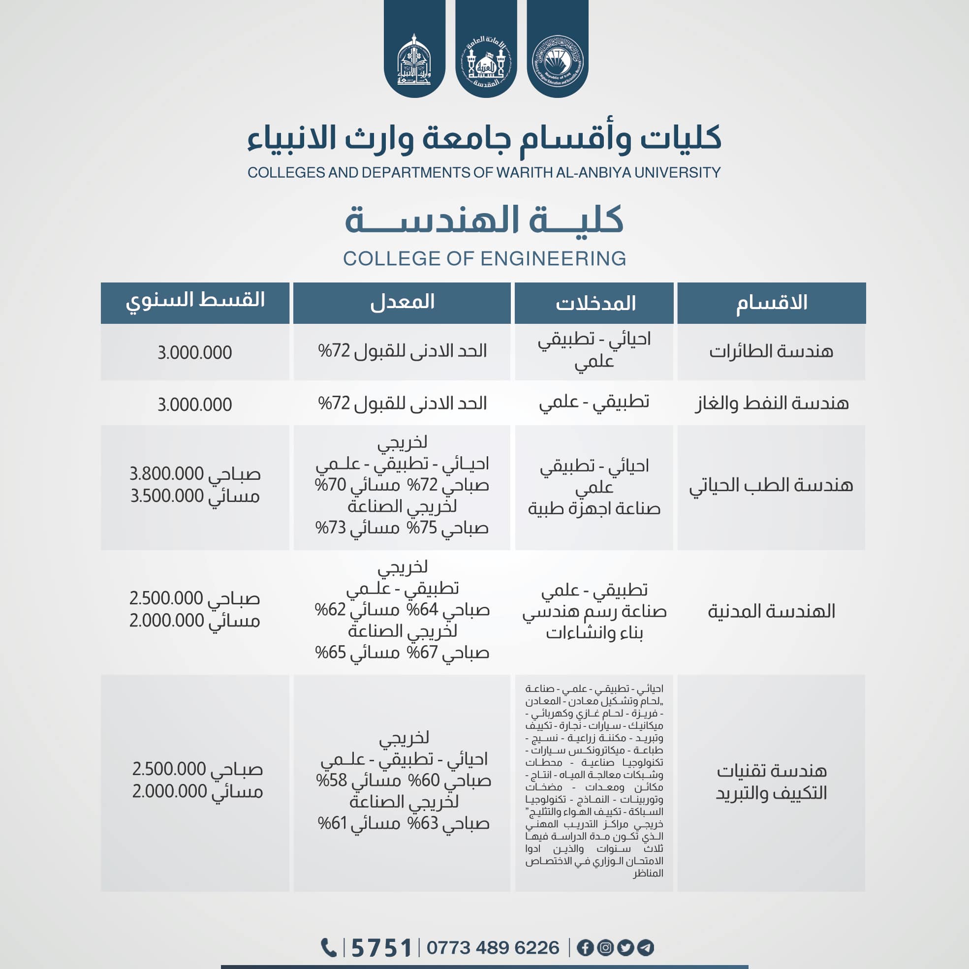 Dear students interested in applying to The Faculty of Engineering at the University of Warith Al-Anbiyaa (peace be upon him):