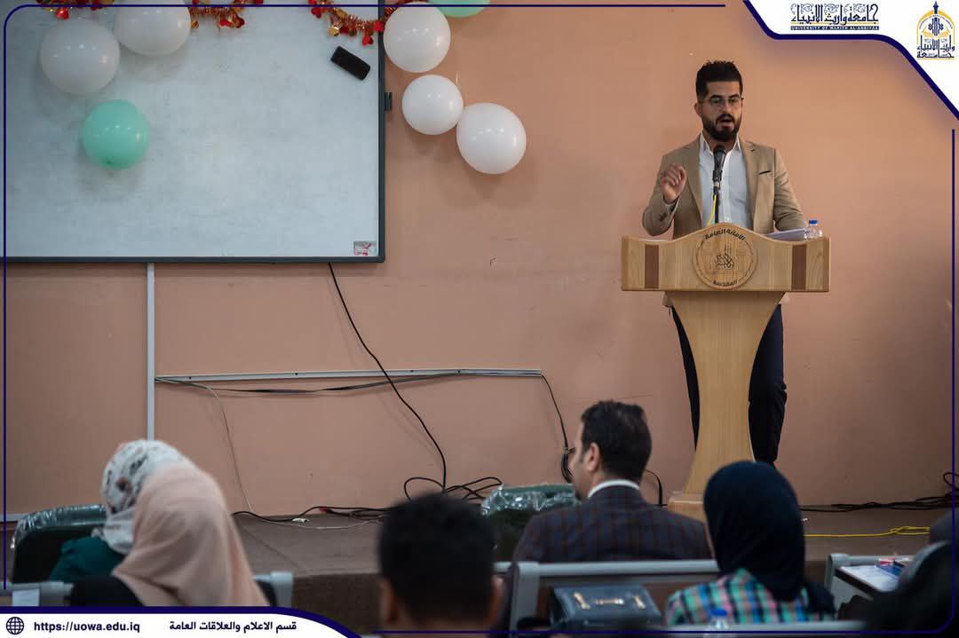 The College of Administration and Economics at the University of Warith Al-Anbiya (Peace Be Upon Him) celebrated the birth anniversary of Imam Al-Mahdi (May God Hasten His Reappearance), with poetic performances and poems expressing love for the Ahl al-Bayt, recited by the college students. In addition, an awareness lecture was delivered by Sheikh Dr. Star Awaid from the College of Islamic Sciences at the university.