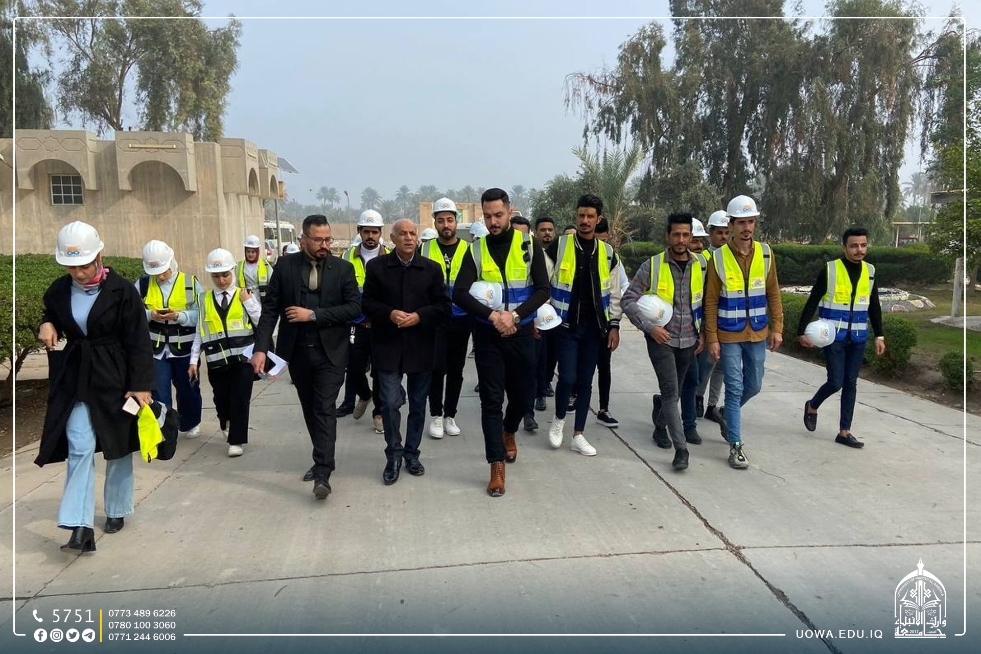 The Civil Engineering Department organized a scientific visit for fourth-year students, accompanied by faculty members, to the Hindiyah Dam project, during which they learned about the history of the dam and its construction, in addition to its capacity for water and the electrical energy generated from it, and how the gates work.This visit came to support the educational process to achieve direct positive effects on the life of the engineer, through presenting the facts of things, seeing the practical application of what the student learns from the engineering sciences, and interacting with direct, realistic experiences during the visit as a result of observation and observation.