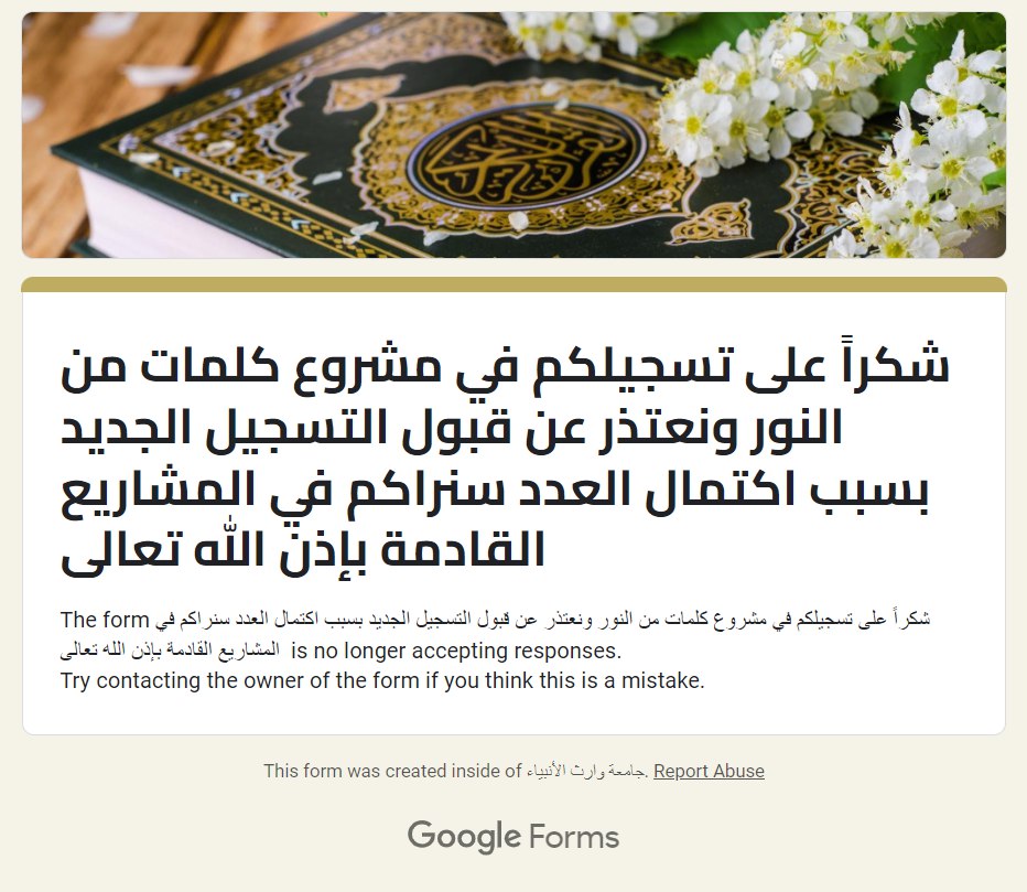 Note that the workshops on how to write the Quran will be held from 11/5/2024 to 10/25/2024.