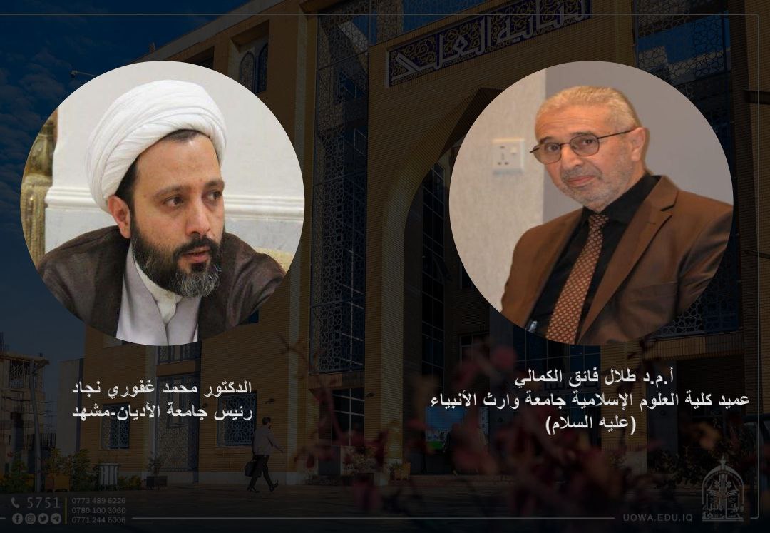 Dr. Talal Faiq al-Kamali, the Dean of the Faculty of Islamic Sciences at the University of Warith al-Anbiya, received the President of the University of Religions, His Eminence Sheikh Dr. Mohammad Ghafari Najad, to discuss ways to enhance scientific and academic cooperation between the two universities. Also present was the Head of the Department of Quranic Studies, Dr. Montazir al-Bayyati.