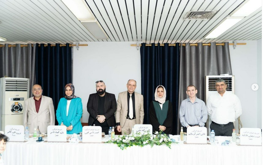 The respected Dean of the College of Medicine, Professor Dr. Ali Abd Saadoun Al-Ghazi, and the Honorable Assistant Dean, Professor Dr. Ali Mansour, met with the committee of evaluation experts from the College of Medicine, University of Karbala, headed by the Dean of the College of Medicine, the respected Professor Dr. Riyad Dhihud, and the respected members of the committee.