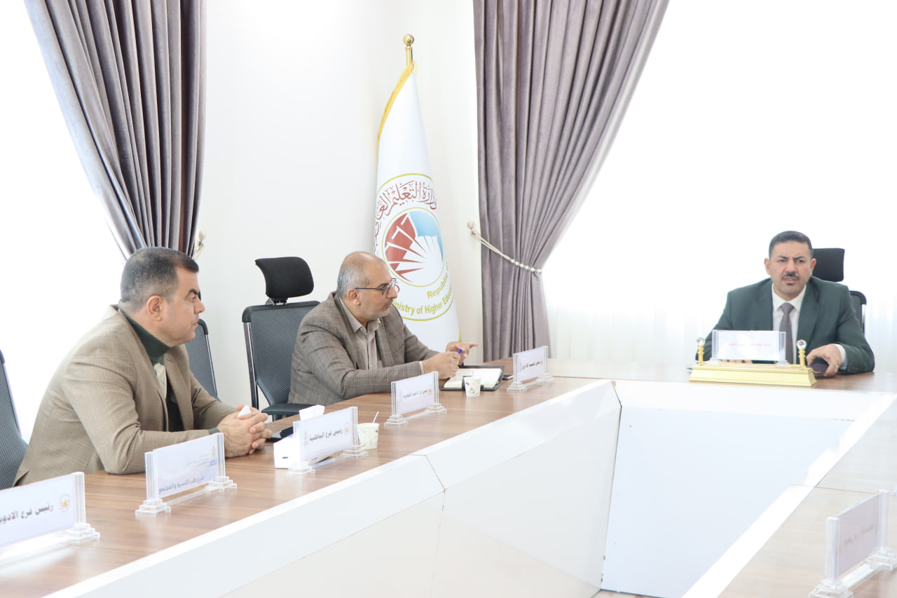 The Honorable Dean of the College of Medicine, Professor Dr. Ali Abd Saadoun Al-Ghazi, the Honorable Assistant Dean for Scientific Affairs, Lecturer Dr. Riyad Haniwa, the Honorable Assistant Dean for Administrative Affairs, Professor Dr. Ali Mansour, the Honorable Director of the Legal Affairs Division, Lecturer Dr. Sabah Al-Jubouri, and the Director of the Medical Education Unit, Lecturer Dr. Ahmed Abdel, met. Respected Muslim, the teaching assistants among the staff of the College of Medicine held the regular meeting to find out the latest developments regarding the work entrusted to them.During his meeting, Dr. Al-Ghazi pointed out the need to make diligent efforts and tireless efforts to serve our university and the educational process in our beloved country.