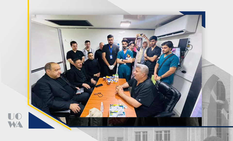 The President of Warith al-Anbiya University (peace be upon him), Professor Ibrahim Saeed al-Hayawi, accompanied by the Dean of the College of Medicine, Professor Ali al-Ghazi, conducted a field tour to inspect the medical detachments participating in providing health services to visitors of Imam Hussein (peace be upon him) during the Ashura ceremonies. The tour included an inspection of the workflow of the field detachments in which medical students participate, and an assessment of their readiness to deal with emergency situations and provide first aid. This reflects an aspect of the practical field training that the university is keen to provide for its students.