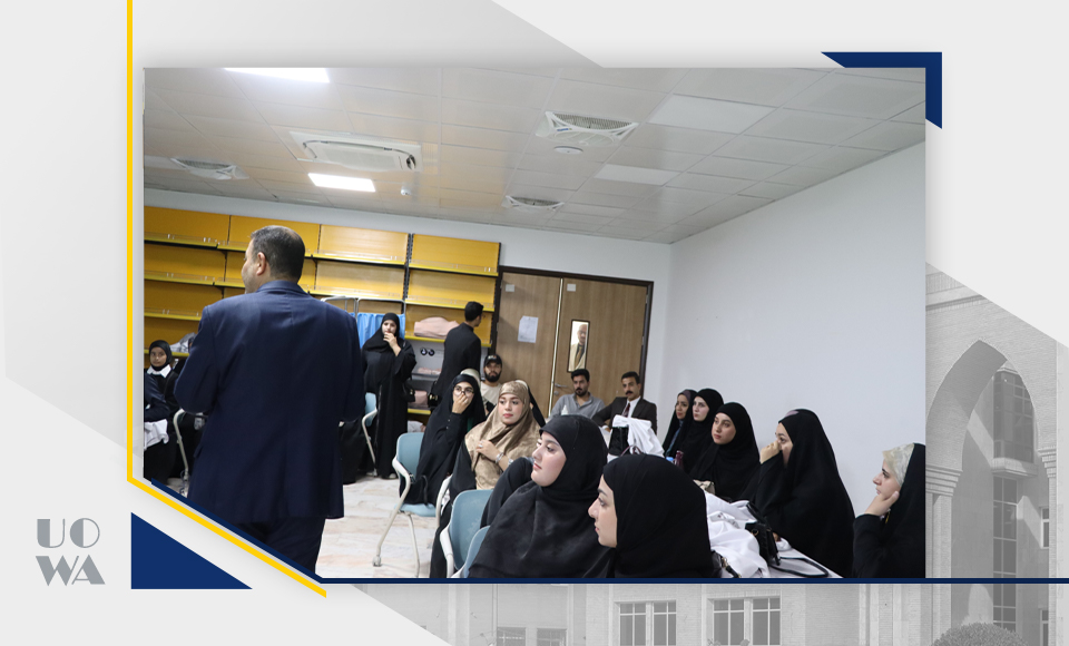 The College of Medicine at Warith al-Anbiya University (peace be upon him) organized a training workshop for its students, in preparation for providing medical services to pilgrims of Imam Hussein (peace be upon him) and Aba al-Fadl al-Abbas (peace be upon him) during the flag-changing ceremony of the two holy shrines on the first of Muharram. The workshop included lectures and practical training on first aid and emergency evacuation, in preparation for participation in this occasion, which witnesses a large public turnout.