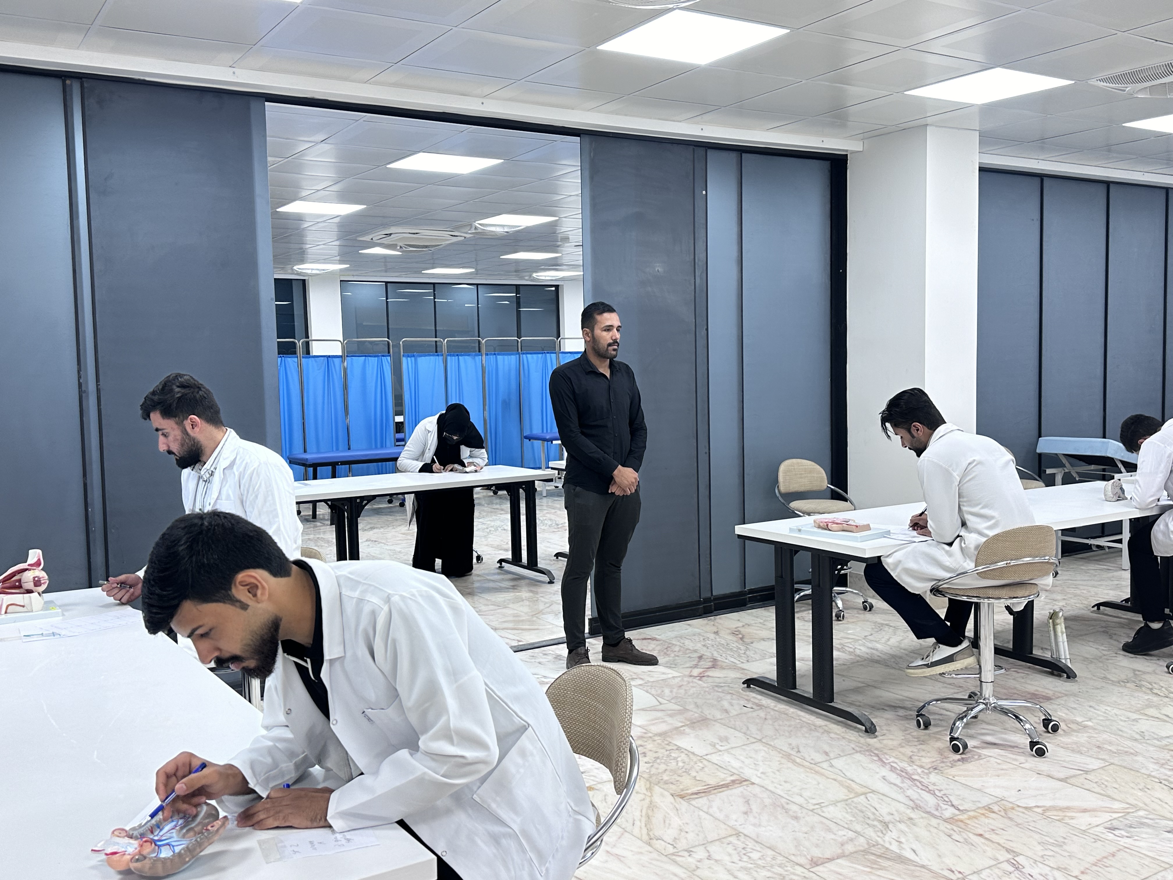 The process is followed-up by the presence of the Dean of the Faculty of Medicine at the University of Warith Al-Anbiyaa (PBUH), the esteemed Professor Dr. Ali Abd Saadoun Al-Ghazi, the esteemed Scientific Assistant, Professor Dr. Ali Mansour, and the esteemed Administrative Assistant, Professor Dr. Laith Al-Husseini.