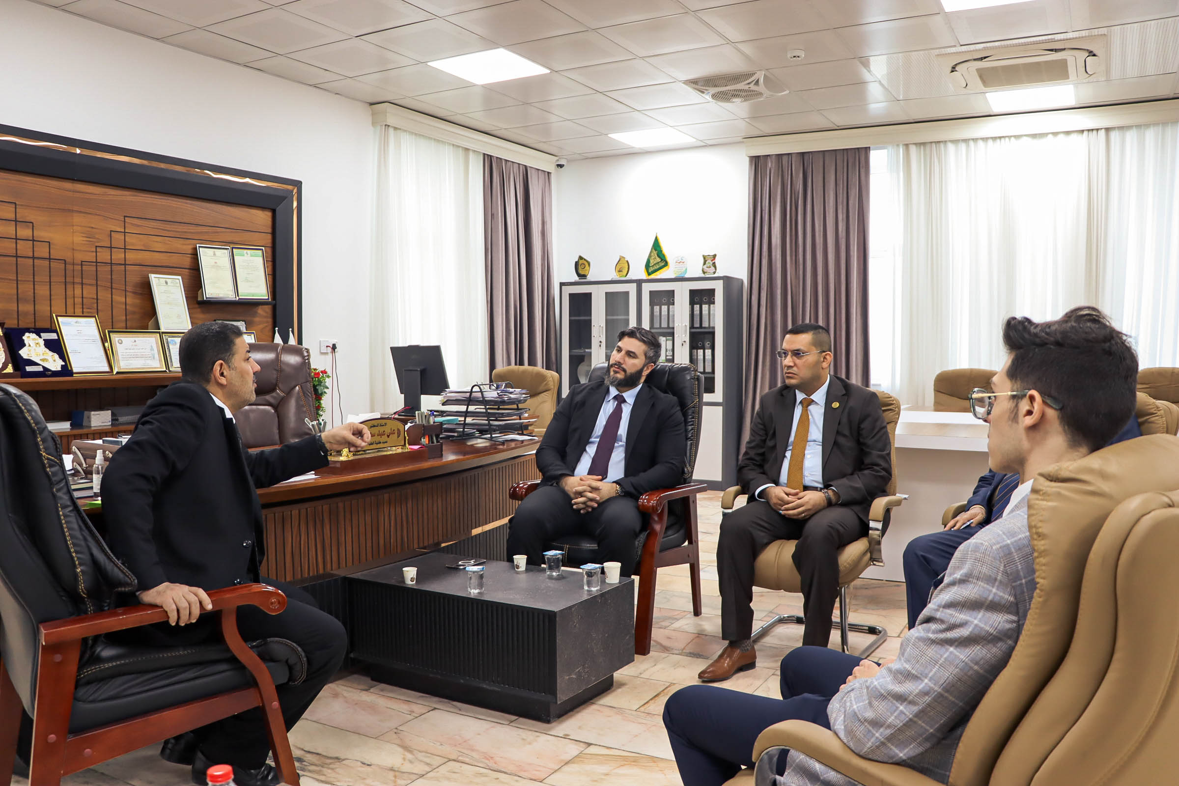 The Dean of the Faculty of Administration and Economics, Dr. Awad Kazem Shaalan, received the honorable Dean Dr. Hussein Maatouk, President of the University of the Prophets, Dr. Ibrahim Saeed Al-Hayawi, on a visit to the college, as part of his continuous follow-up to the educational process and academic activities in the university's faculties. During the visit, they discussed a number of issues related to the development of academic and administrative work, reviewed the most prominent scientific programs and activities implemented by the college, as well as ways to enhance the quality of education and improve the scientific level in line with the university's vision of achieving academic excellence and community service. The President also praised the efforts exerted by the Deanship of the College and its teaching and administrative cadres in supporting the educational process and providing a stimulating scientific environment for students.