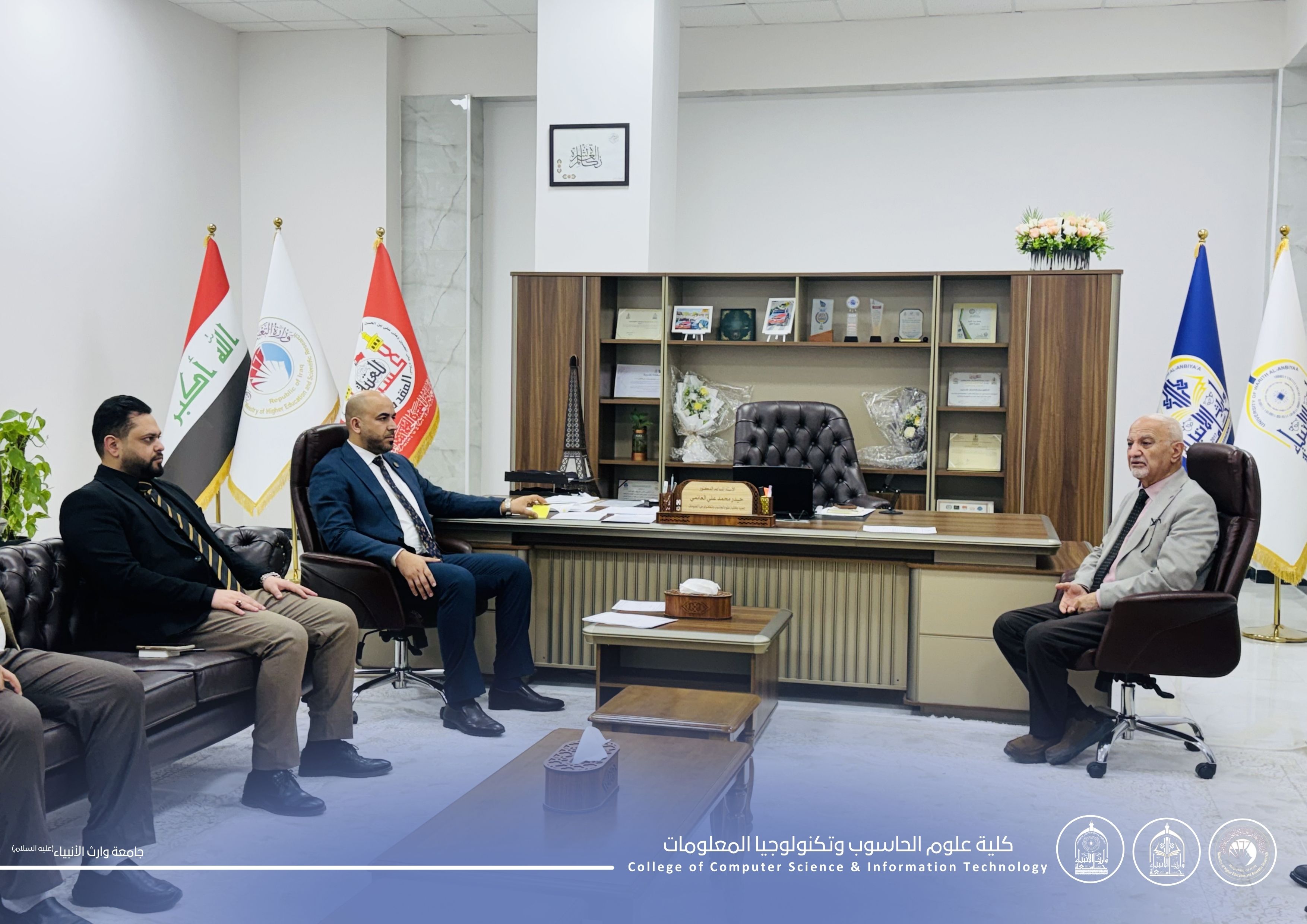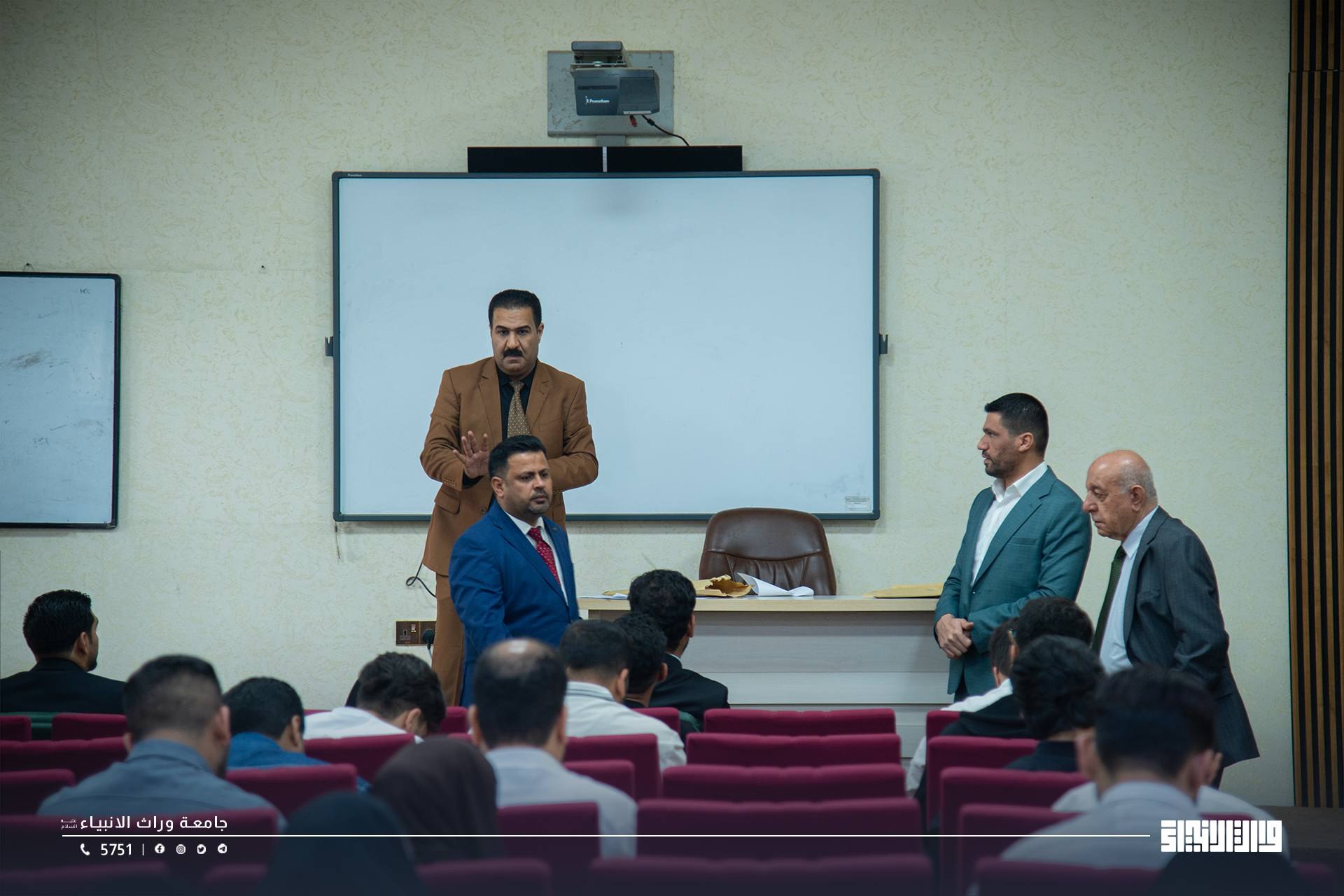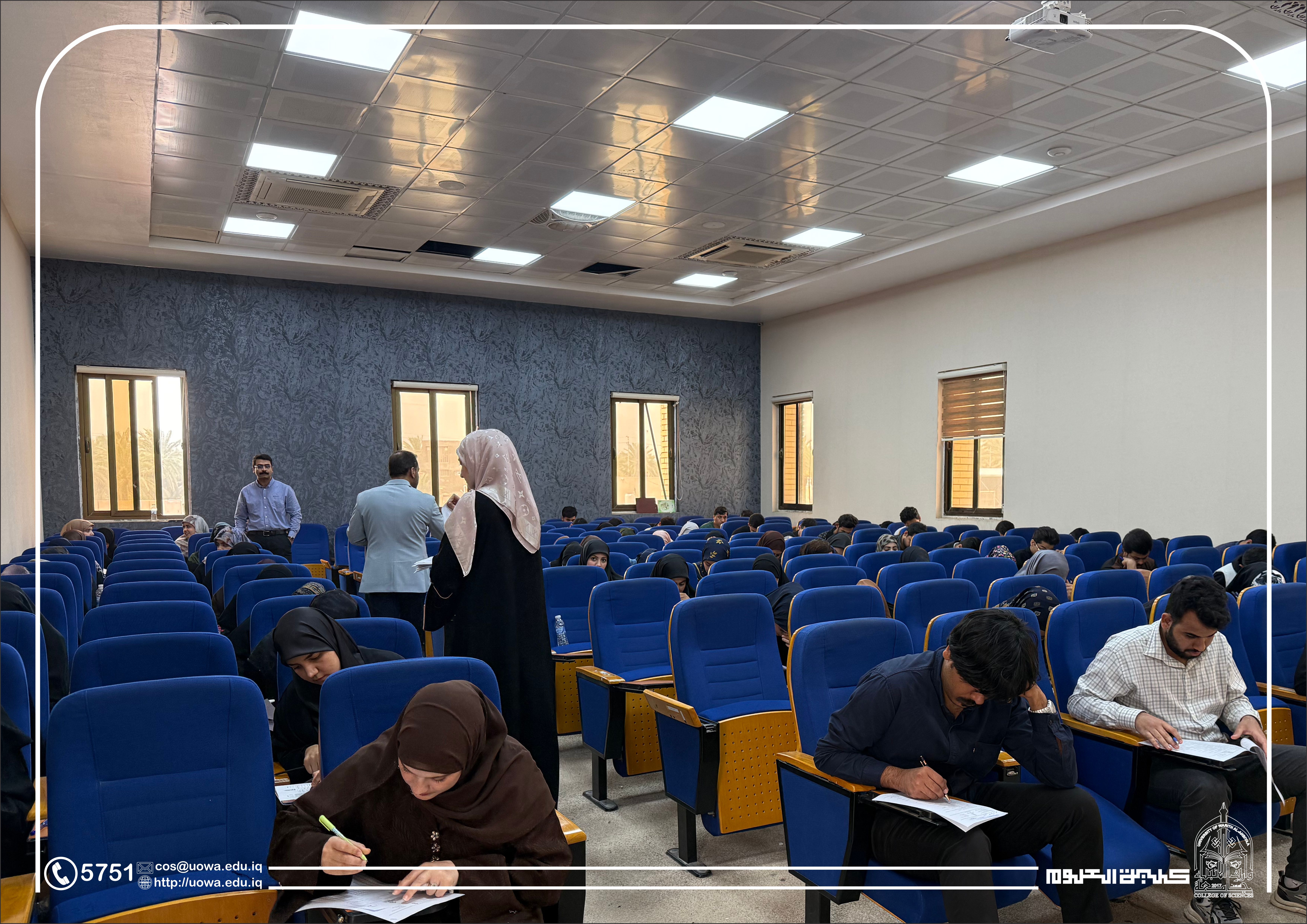 The Assistant President of the University for Administrative Affairs, Professor Dr. Nawfal Al-Araji, visited the College of Computer Science and Information Technology at the University of Warith Al-Anbiyaa to review the progress of the final examinations for first-year students and to follow up on the administrative and organizational aspects.