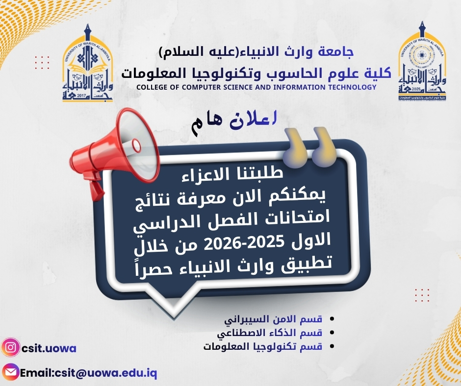 The results can be viewed exclusively through the Warith Al-Anbiyaa University application by logging into the app and checking the examination result, provided that the student has completed all clearance procedures.