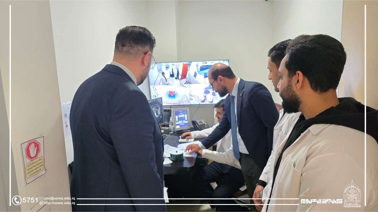 Professor Dr. Ali Abdul Saadoun Al-Ghazi, Dean of the College of Medicine at Warith Al-Anbiya University (PBUH), conducted a field visit to several of the college's halls and laboratories. During the visit, he met with practical groups and teaching assistants to review the progress of academic work and the level of support provided to them and the students. The Dean toured the classrooms and scientific laboratories, listening to the observations of the teaching assistants and practical groups regarding the needs of the scientific departments and the requirements for developing the infrastructure in line with the principles of modern medical education. He also discussed with the teaching staff ways to improve students' practical and clinical performance, emphasizing the college's commitment to providing a comprehensive academic environment that helps them develop their scientific and practical skills. Professor Dr. Ali Abdul Saadoun Al-Ghazi stressed the college's continued commitment to enhancing the quality of the educational process, modernizing laboratories, and supporting initiatives that contribute to developing the skills of both students and teaching assistants. This visit is part of the college's ongoing approach to field monitoring to ensure the readiness of classrooms and laboratories and to provide all the requirements for the success of the educational process.