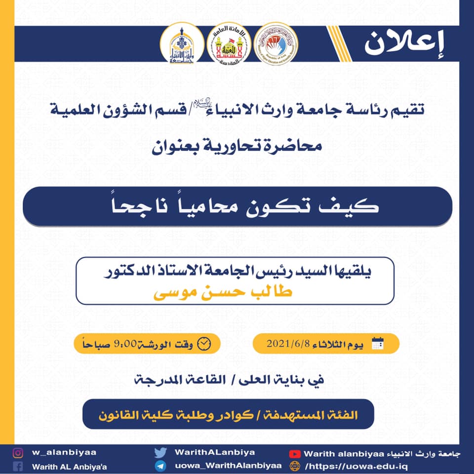 Active Follow-up from the Presidency of the University of Warith Al-anbiyaa (peace be upon him) for E- lectures