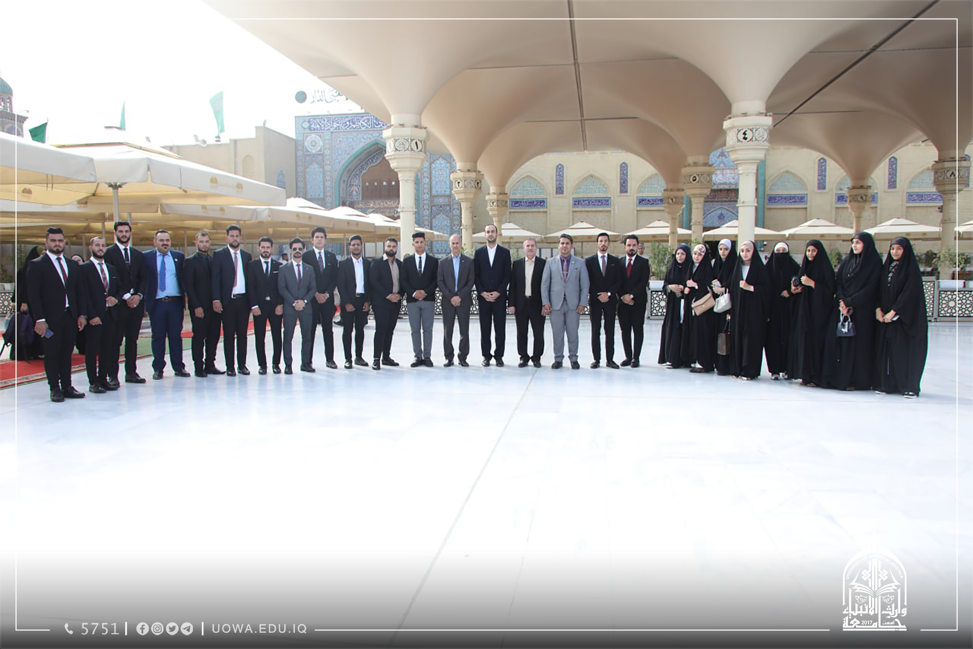 In cooperation with the Directorate of Imam Hussein Holey Shrine and within the programme of Cultural Project for Iraqi Youth, a delegation of medical students from the University of Kufa visited the University of Warith Alanbiyaa to see the university's faculties and scientific laboratories. The acting president Dr. Nofal Al-Araji received the delegation and said: