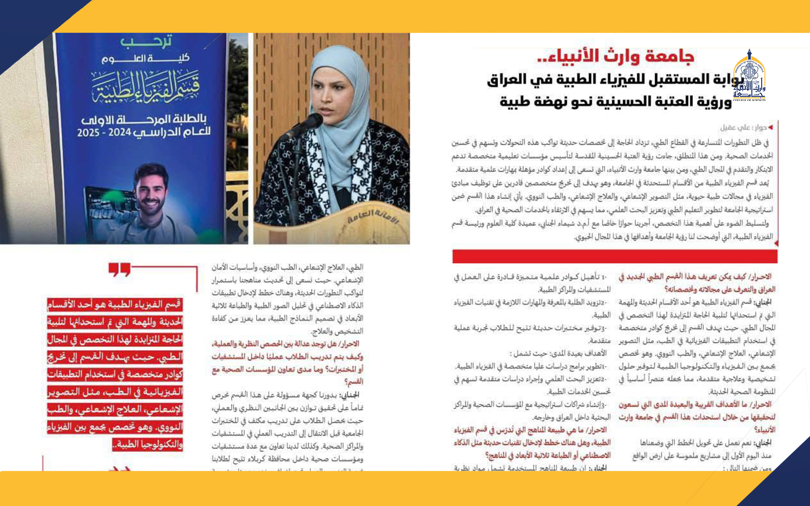 #University_of_Warith_Al_Anbiyaa #Medical_Physics #Al_Ahrar_Magazine #Holy_Shrine_of_Imam_Hussein #Higher_Education #Scientific_Research #Medical_Advancement #College_of_Science